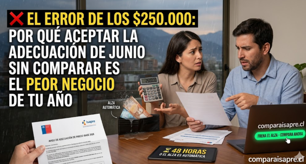 Aceptar la adecuación de tu Isapre en automático es regalar dinero. El alza del 3,5% anualizado significa perder cerca de $250.000 en sobreprecios evitables.